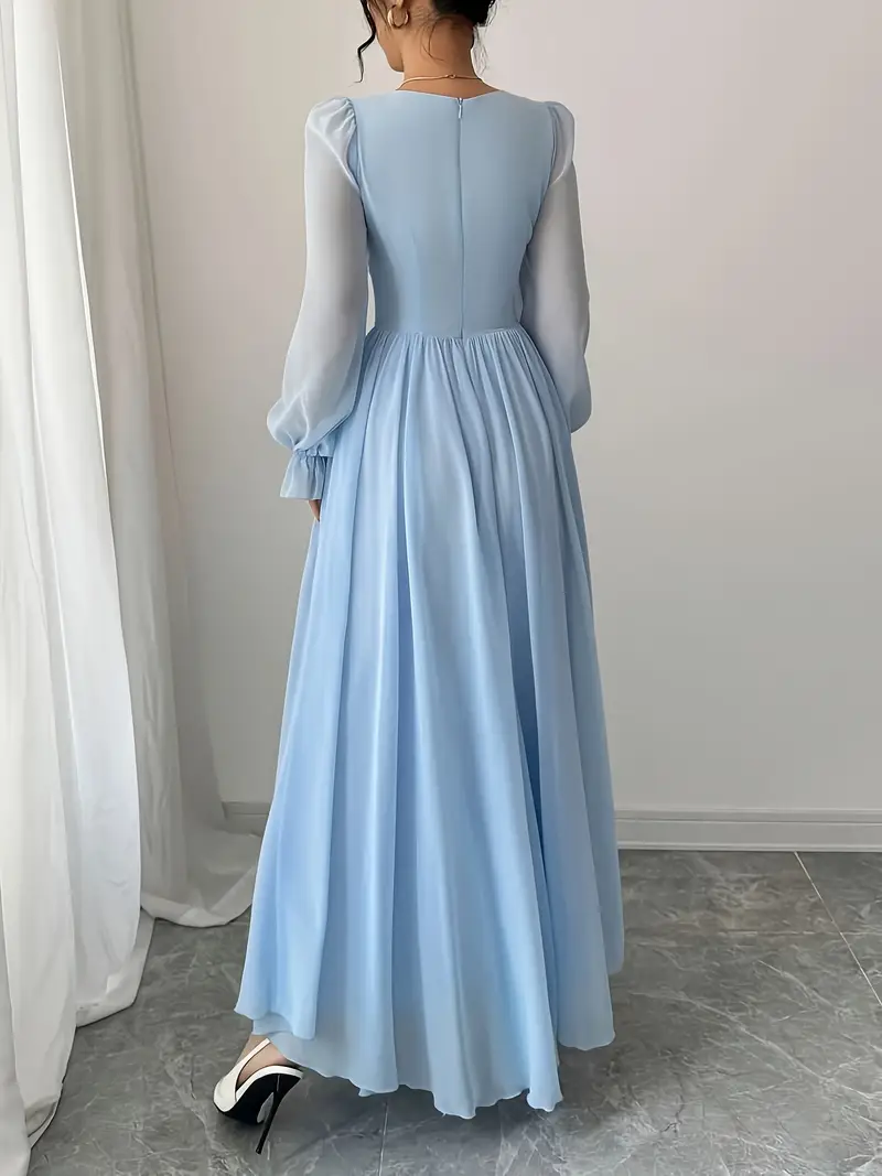 Step into timeless grace with the Chiplar Light Blue Chiffon Maxi Dress, a flowing masterpiece designed to make every moment feel special. Crafted from luxurious lightweight chiffon, this dress drapes beautifully with a soft A-line silhouette, flattering every shape and movement.